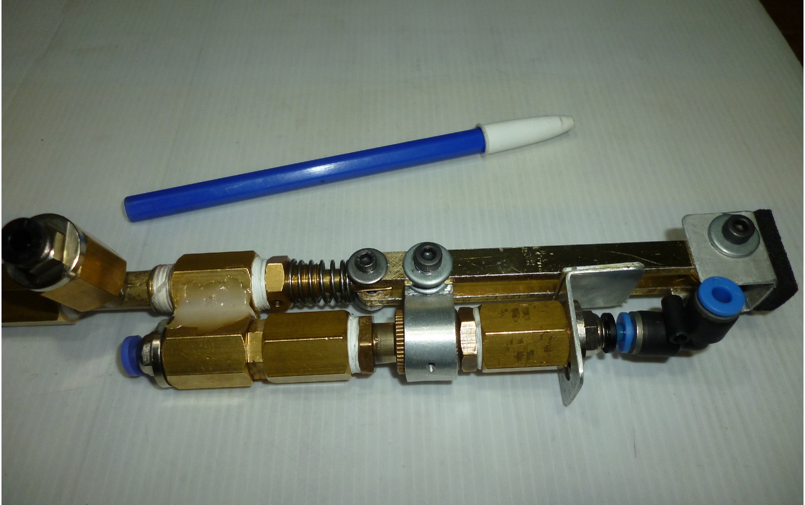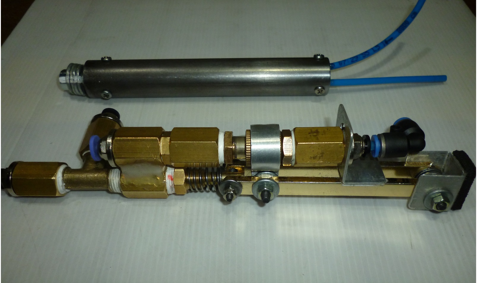 The simplest system just built. It is in relation to size with a common pen to get an idea of ​​the actual size. It consists of the valve body and the variable volume dispenser, (it serves me for several future weapons).