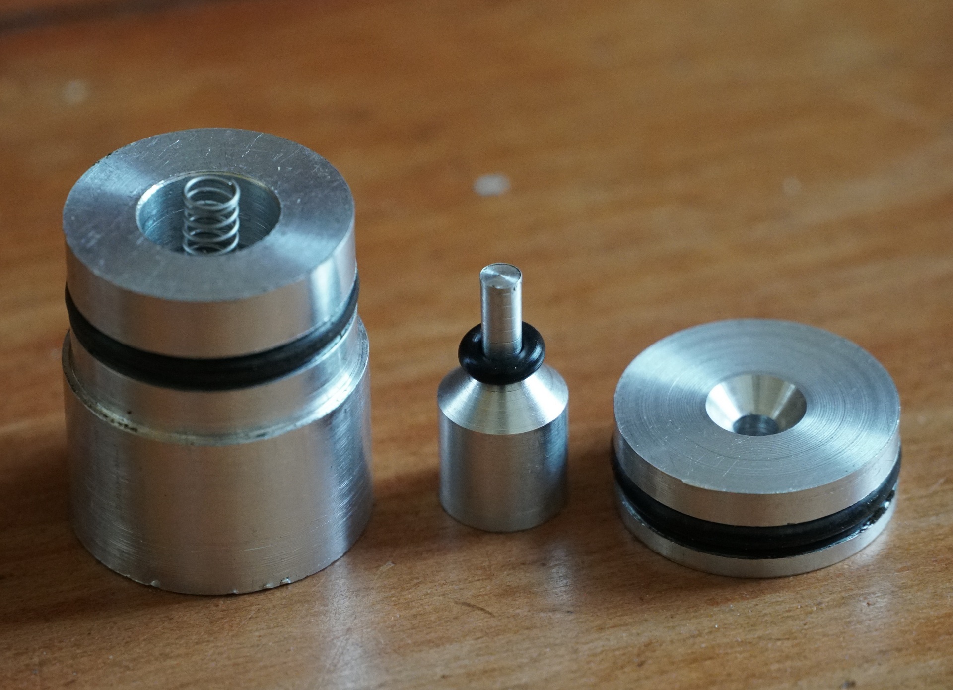 The pump is a 20mm copper pipe brazed into a 20mm fitting with a custom checkvalve built into that fitting. I aimed for 0 dead volume in the pump to improve efficiency and the maximum pressure that can be reached and think I have got pretty close to achieving that. The piston uses a double floating o-ring with a few ports to aid 'recharging' the pump on the up-stroke.