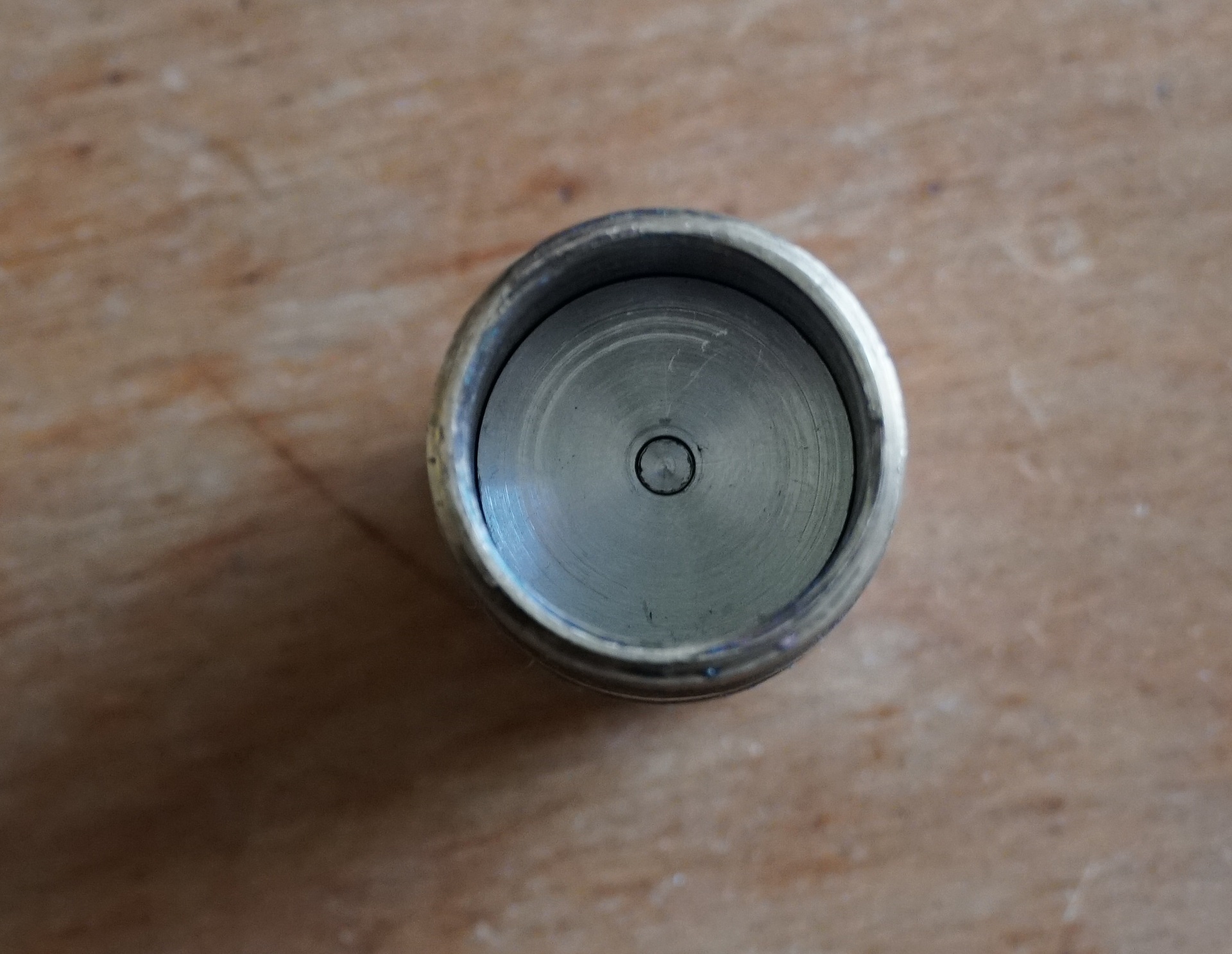 The copper tube meets this surface and is soldered in place, when the iron reducing fitting is threaded on it sandwiches everything together. This allows for any part to be accessed and serviced if needed in the future. Also while we are at this point, I flared the end of the copper tube ever so slightly as this is not a brazing fitting so is slightly over sized, this shuts off the gap preventing solder from flowing down into the check valve area.