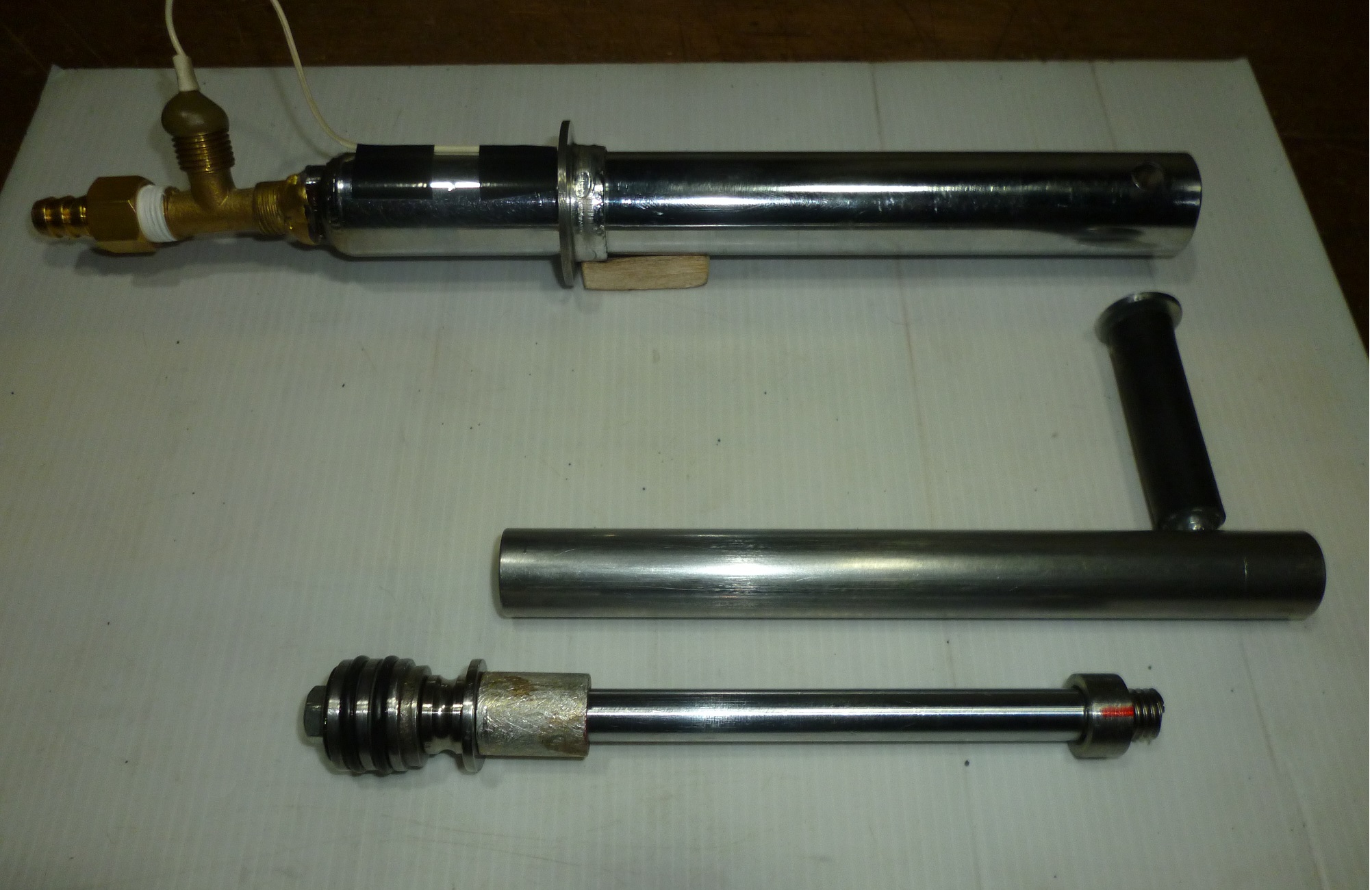 I'm going to try like this, I can't do much more. It was impossible to buy a seamless steel tube of 1 cm inside diameter, or here there is nowhere. The minimum commercially available is 1 ". The one I have is a motorcycle shock absorber, of good quality and 1 mm thick.