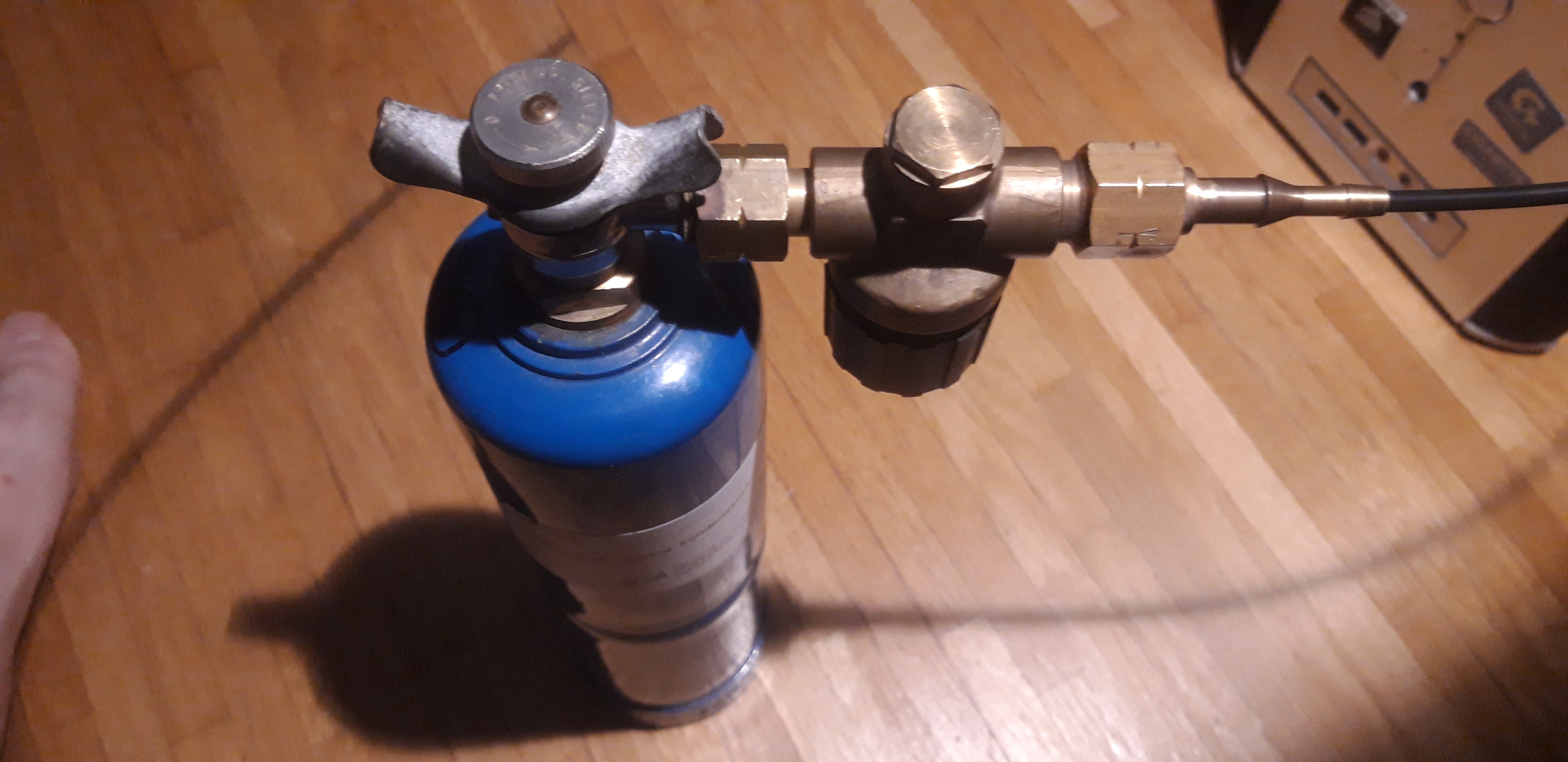 - The fuel comes from a propane cylinder, with a propane regulator set to minimum pressure (it says 1 bar, but I haven't checked).