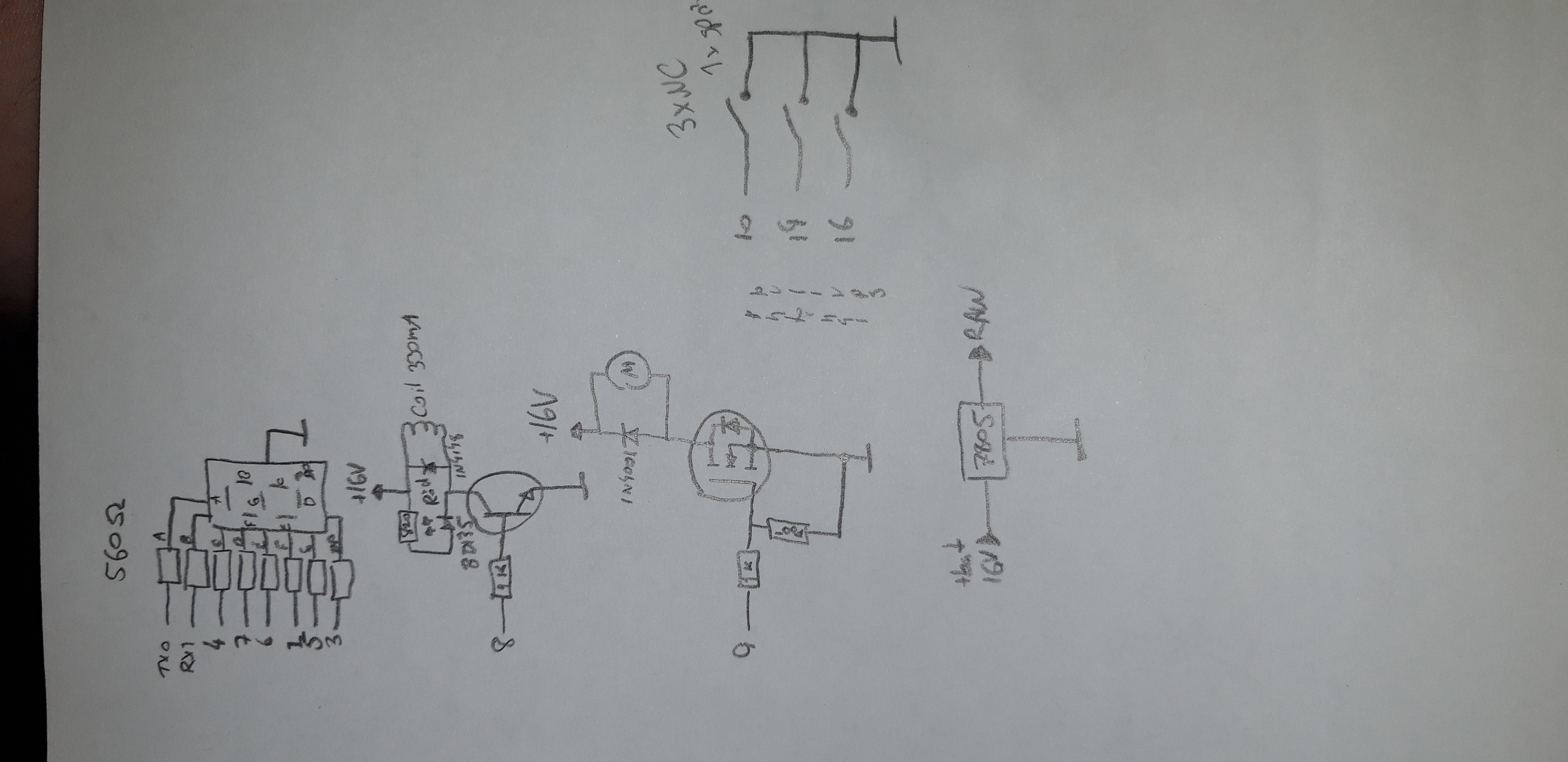 - The circuit is powered by 4S 18650 lithium cells (16V fully charged, 12V empty). I'll get (or 3D print) a better battery holder, and probably have the Arduino keep an eye on the cell voltages. Charging will be done by a separate charger that monitors individual cells.