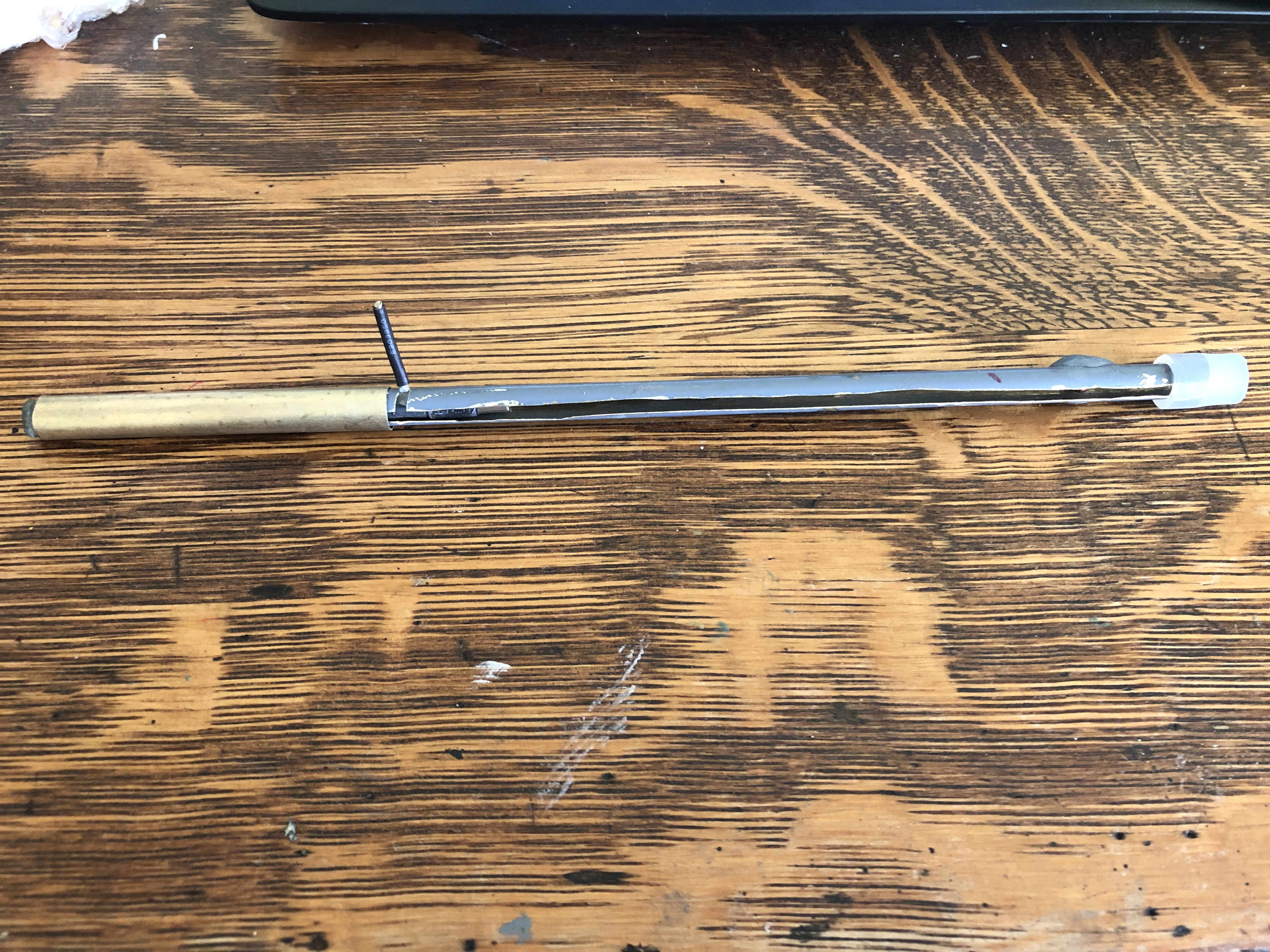 It may not look very pretty now, but with some wood filler and stain, I hope to have look a little nicer than the "random plumbing parts and pneumatic valves" current aesthetic.