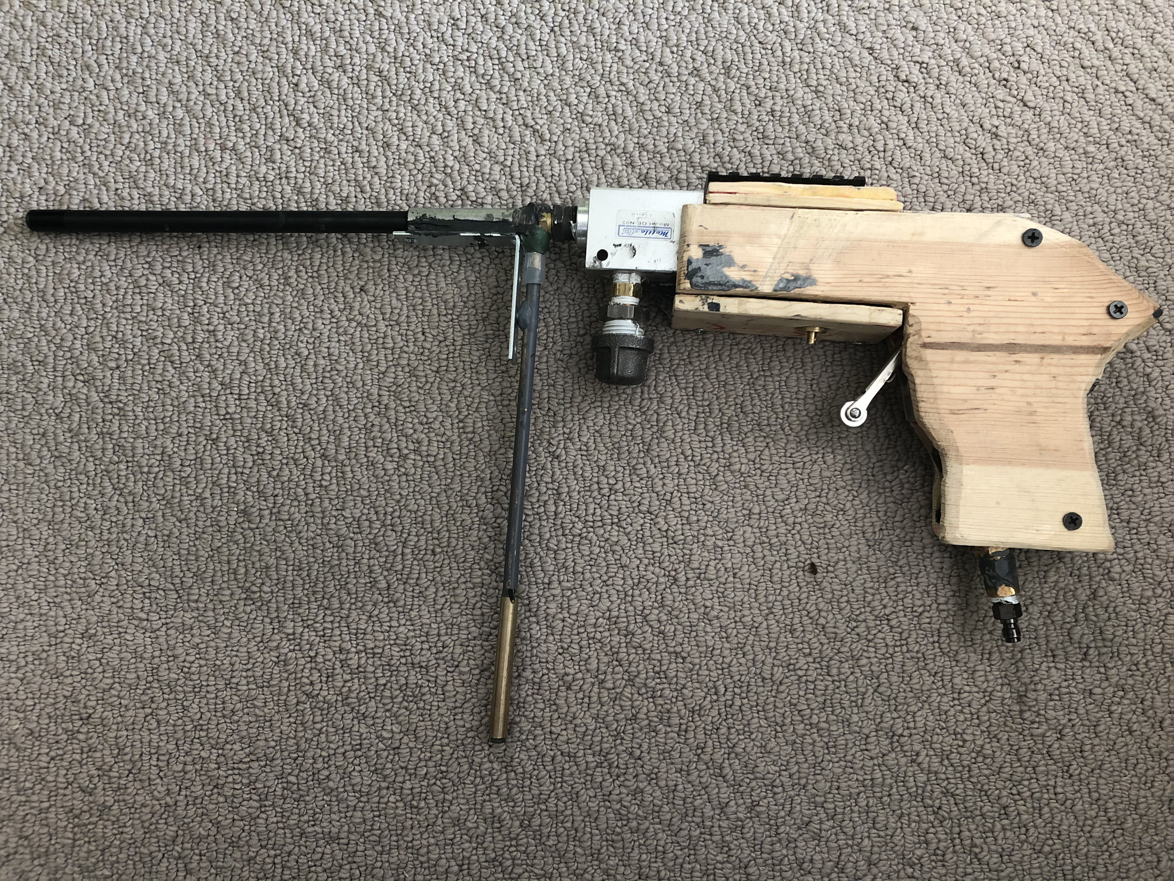 Aluminium block I found, it was quire a lot of work on the drill press. Getting the right spring and piston was the tricky part.