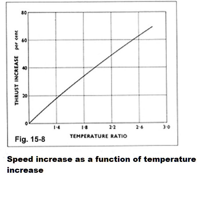 In my jet engine, for example, the air coming out of an electric ducted fan, at a not very high speed, is accelerated to twice that speed in the afterburner. This is the old video of my engine working with cold air, first and then with the burner on. When it is hot, the thrust increases to double, measured with a balance, and this is only due to the increase in speed because the mass flow that escapes through the nozzle is practically the same.