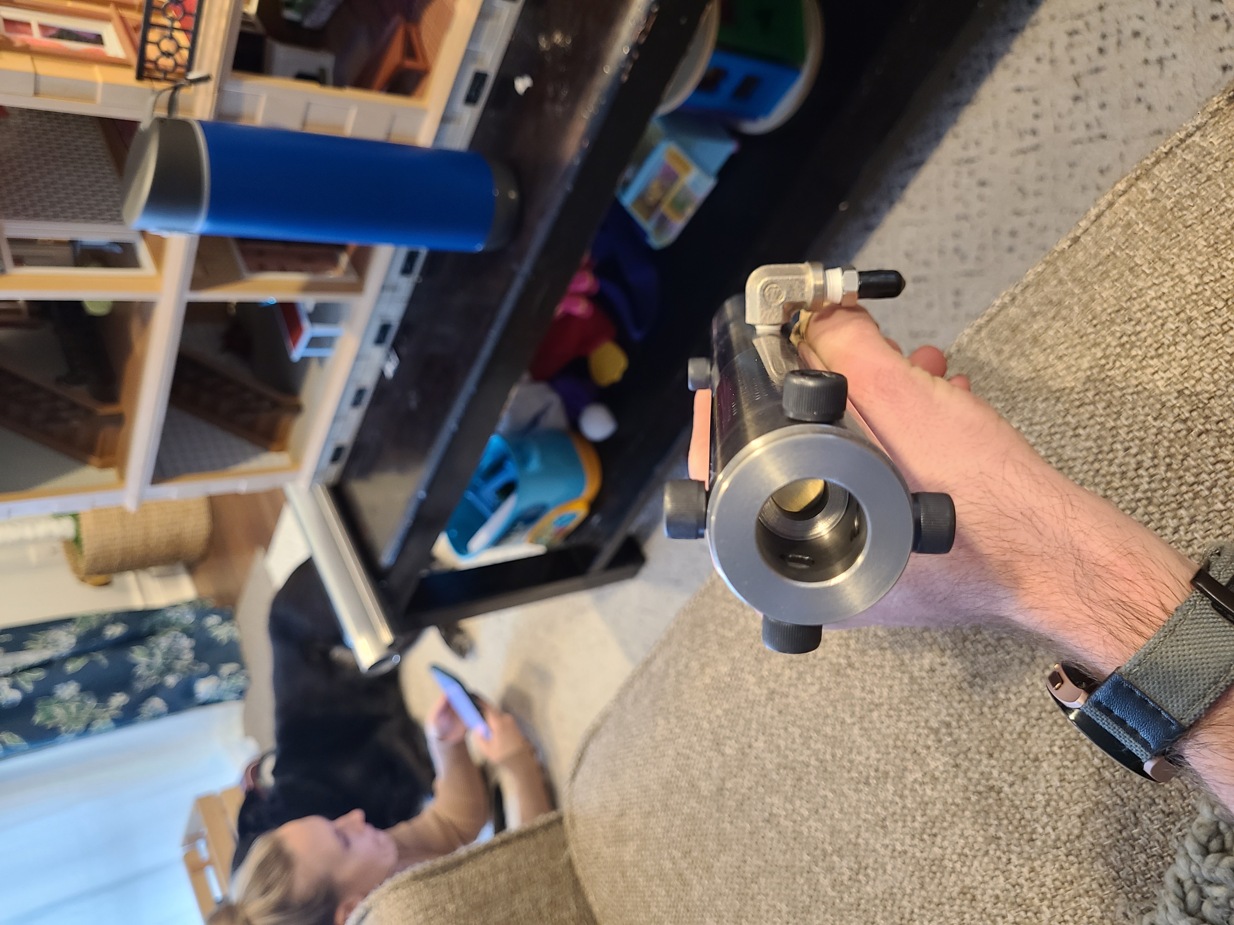 Next up is designing and building the hammer system to actually fire the gun. I have some 1000psi videos of tests done, but no real shots yet, as the gun is obviously not nearly complete. My plan is to affix another stainless tube under the existing one, and run a double hammer system. The secondary hammer will be longer, and in the lower cylinder, further away from the rear of the gun so shoulder-mount is a more natural position. The main hammer will link to the secondary hammer (the one in the primary cylinder) via a pin with a slot machined in one of the hammers to allow a bit of 'free movement' prior to engagement. This likely sounds overly complex, or doesn't make sense at all, but I want a reliable enclosed system here.