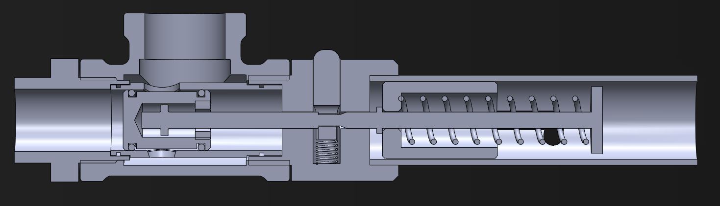 Also, to help it open, i had hollowed out the spool so the collar on the sprung rod impacts it to get it moving. Before that, the o-ring sticking friction at higher pressures was too high for the spring to move it.