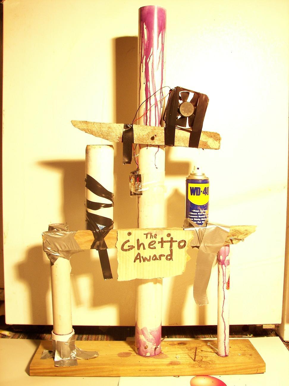 I made the Ghetto Award Trophy. It was made out of respect for all those who can make something work out of seemingly nothing. It's for the MacGuyvers out there. The masters of rigging. The duct tape enthusiasts. It's symbolic to creativity, resourcefulness, and half-assedness.ballad of NJ wrote:i didnt make it. i dont know who made it but sgort gave it to me