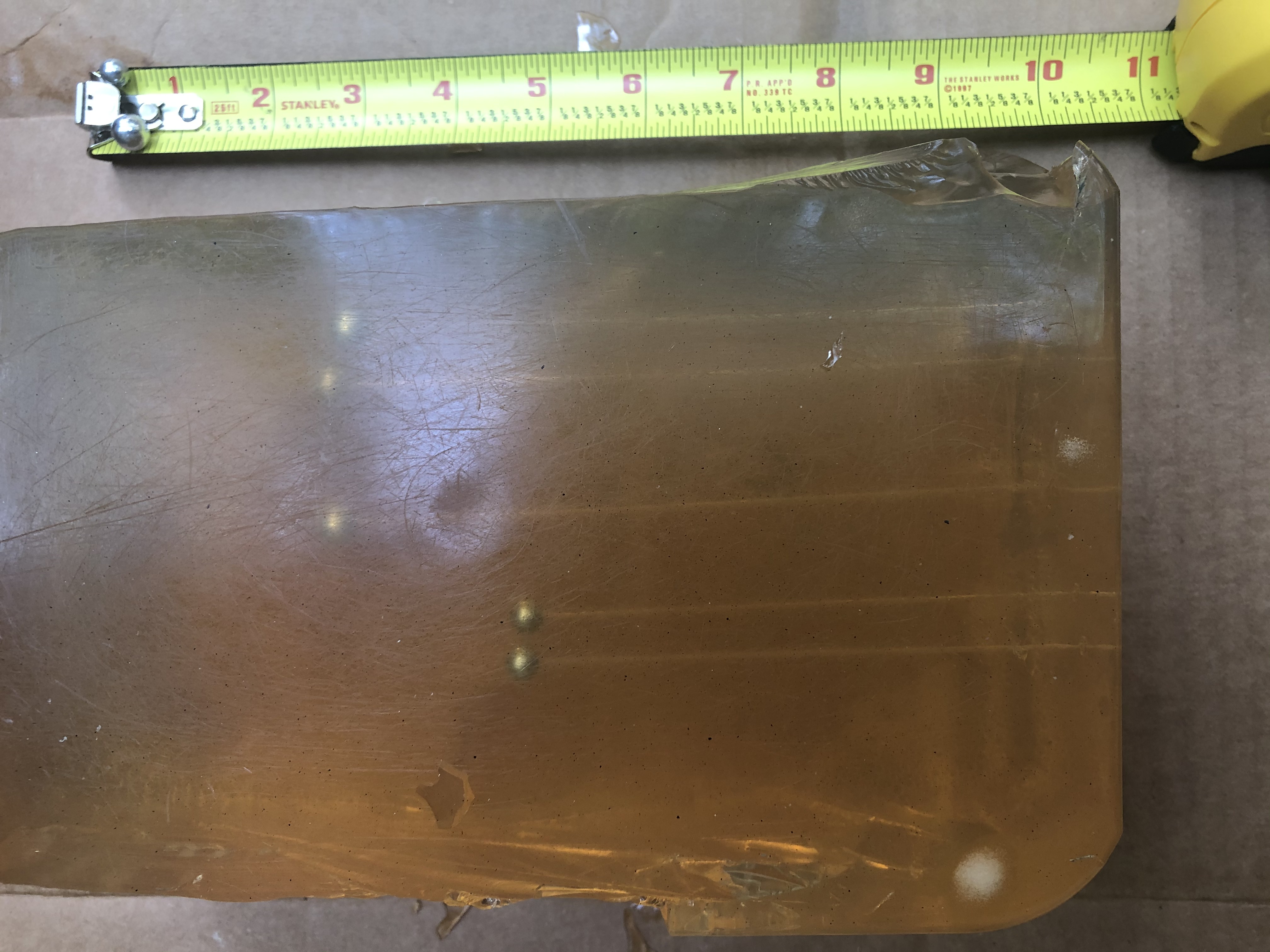 This is a test using some homemade ballistics gel. I made a 4 Liter block with a standard 10% mix. The 3/8 in shot went in 7 inches and the .30 shot went in 5 inches.