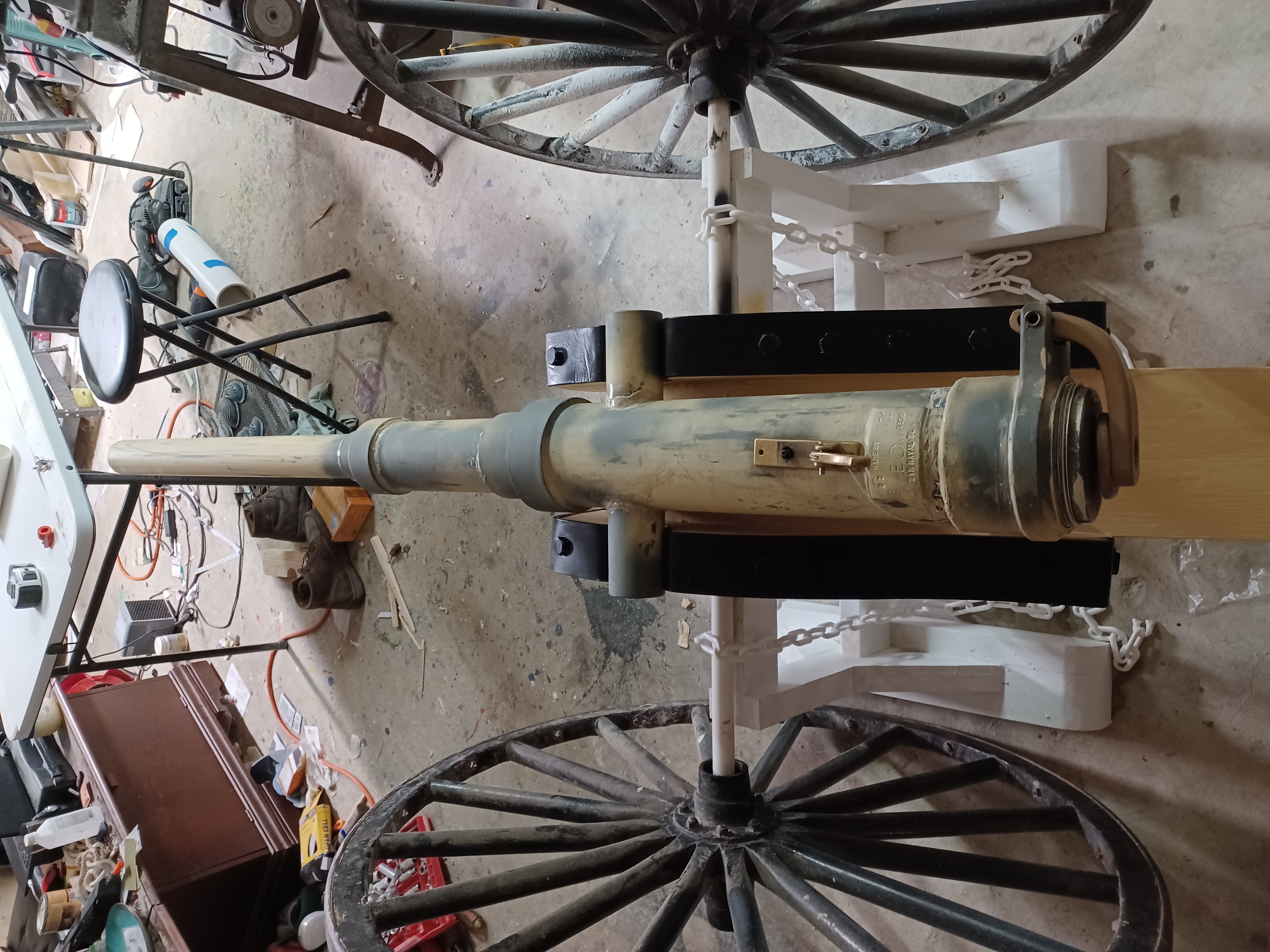 I am attempting to build spud cannons that closely resemble historic field artillery and naval deck guns circa 1860 - 1940. My first attempt is a British 12 pounder as built by The Elswick Ordnance Works in 1891. I am so far happy with the looks, but she will not fire. I have tried a variety of aerosol propellants, timing my spray into the chamber between 1 to 15 seconds. The specs on the gun are 2" bore x 40" length, runs through 3" tube into 4" chamber which is 18". The trunnion/s is a one piece 2" tube that passes through the 4" chamber with holes drilled through the trunnion inside the chamber. I am using a device that fires a percussion cap into the chamber. I enlarged the hole in the nipple and have confirmed I am getting a good 4" spark/flame into the combustion chamber. Is the chamber to large?, trunnion passing through chamber? any advice will be greatly appreciated. See attached images.